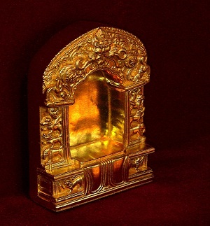 up from the jaws of one Makara, rises to its peak, the Kirtimukha